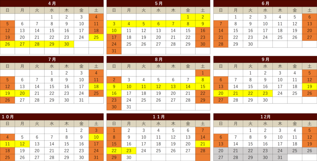 | 料金 | レギュラーシーズン(白色) | オンシーズン(橙色) | ハイシーズン(黄色) |